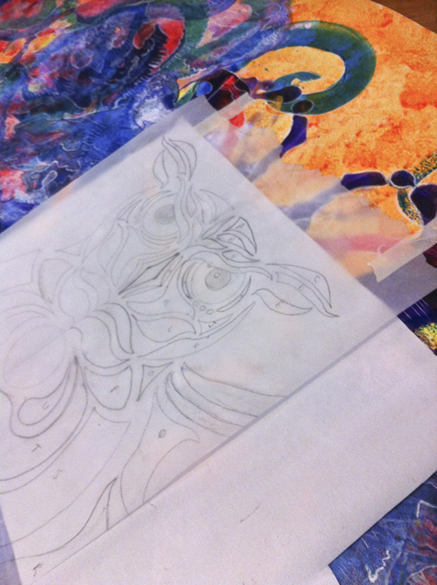 - if using transfer paper, go over the original lines on your design with a different coloured sharp pencil or pen (if you use the same colour, you’ll easily lose track of which lines you’ve already transferred