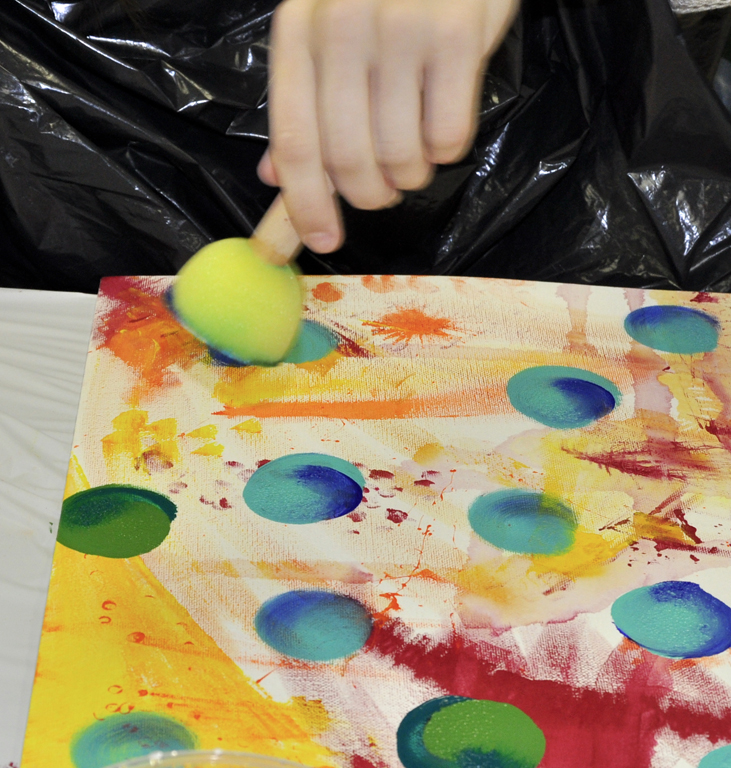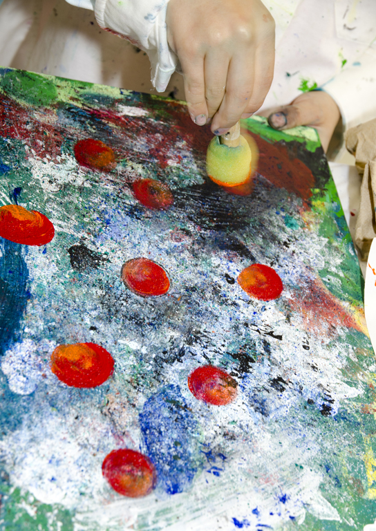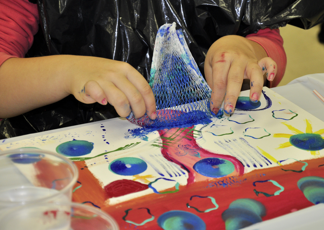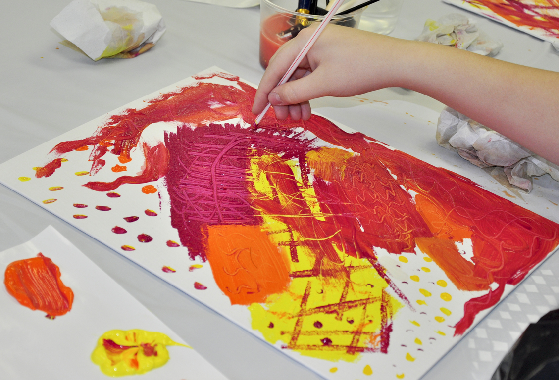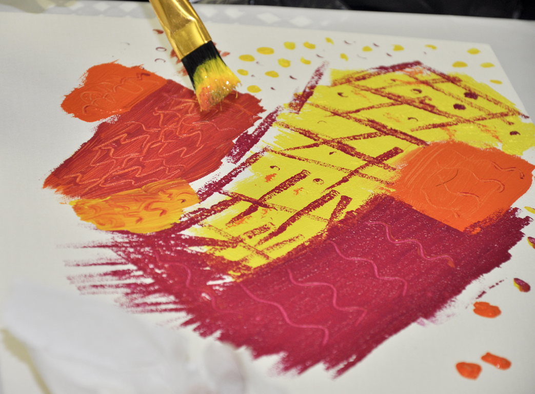 Be creative in finding natural or man-made mark-making tools (sponge, comb, leaves, various paintbrushes, bottle caps, stamps, etc.).