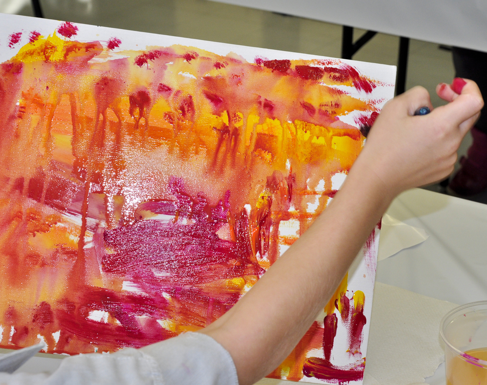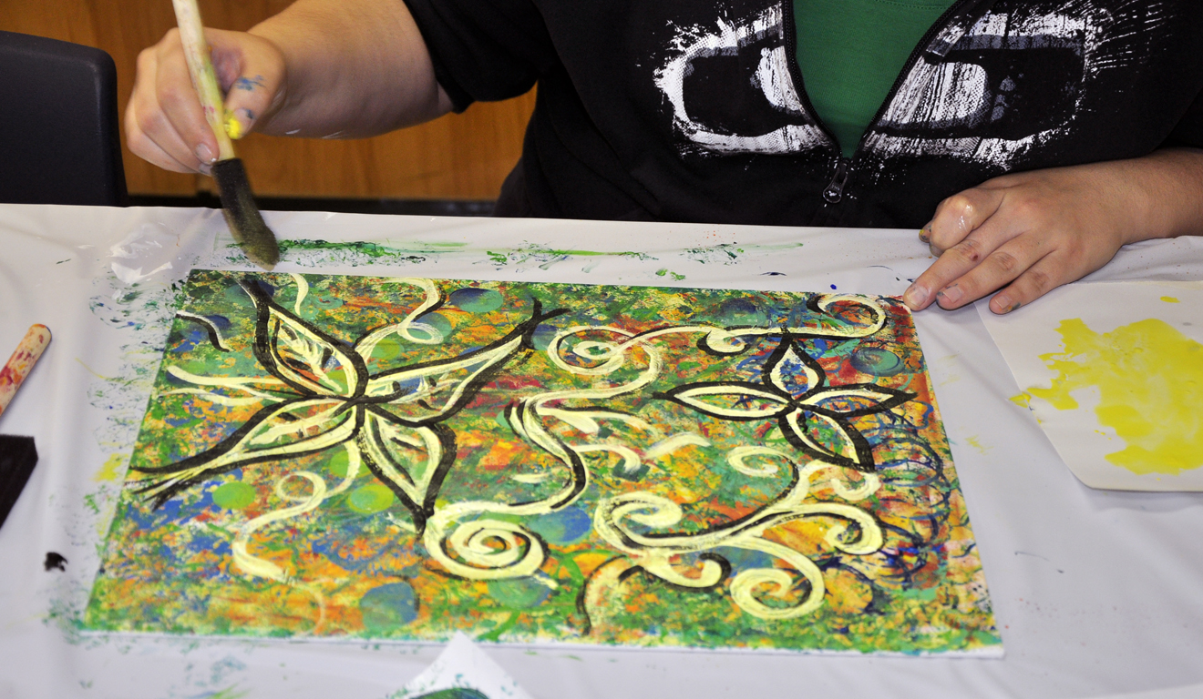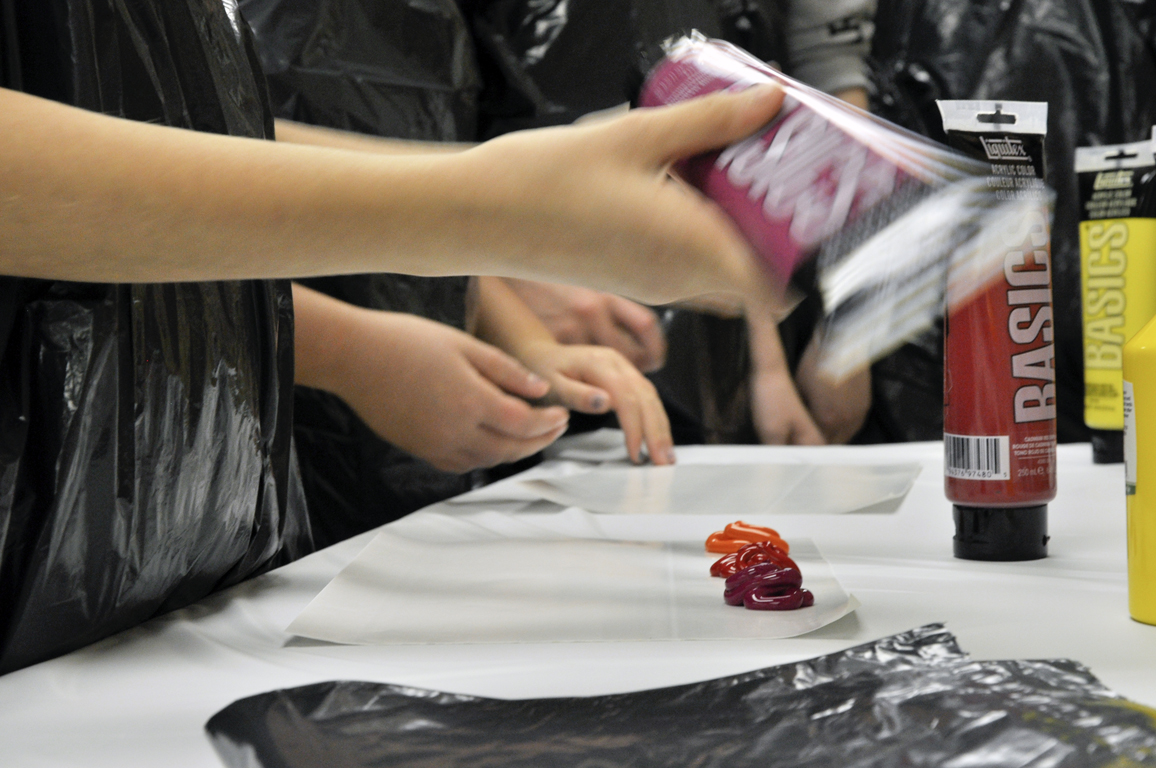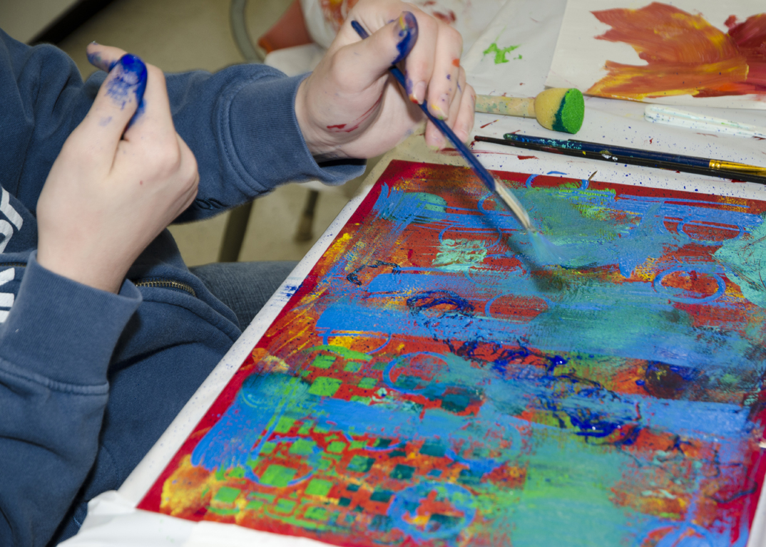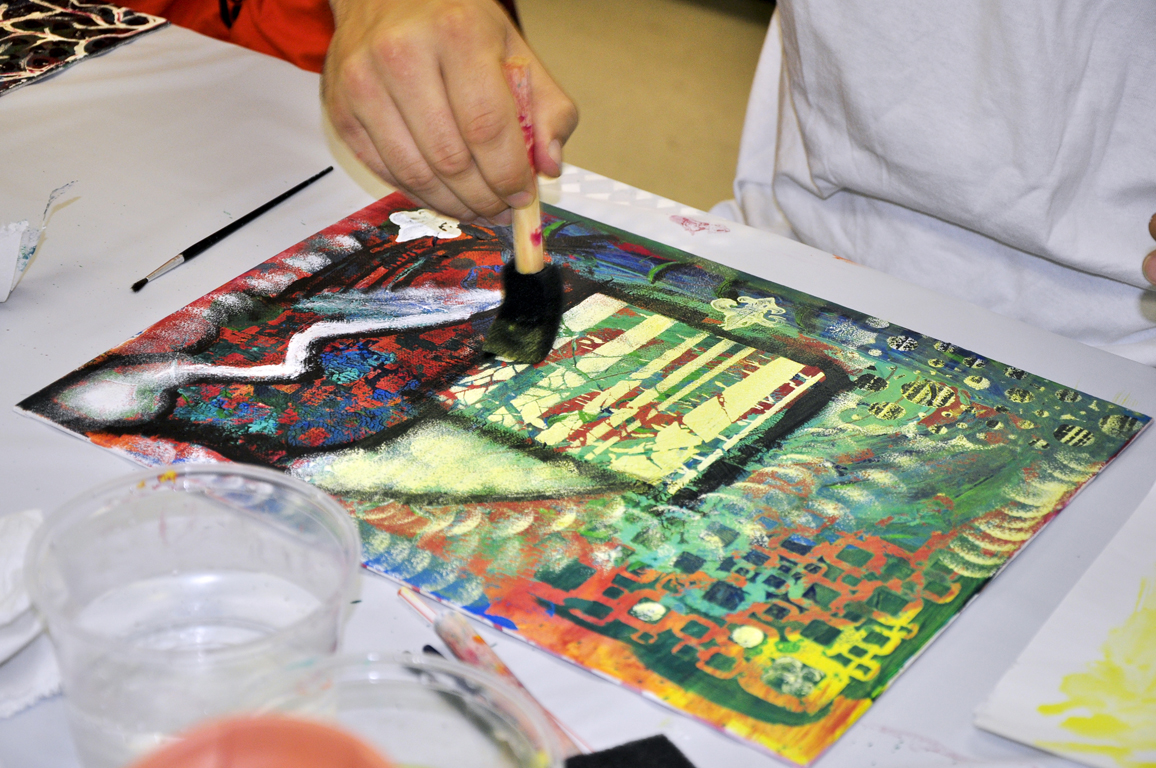 Be creative in finding natural or man-made mark-making tools (sponge, comb, leaves, various paintbrushes, bottle caps, stamps, etc.).