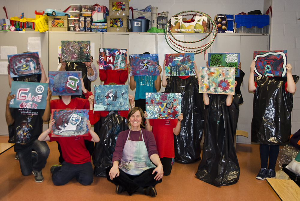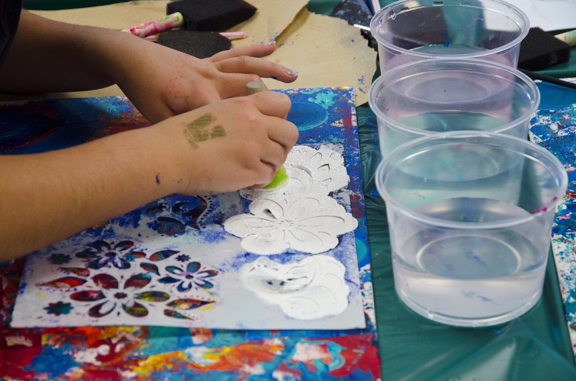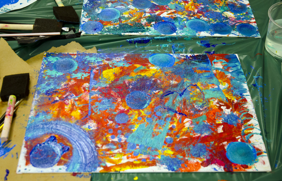 - variety of mark-making tools (possibilities are endless: comb, toothbrush, bottle caps, old dead pens, special brushes, stencils, sea sponges, nets, bubble wrap, leaves, stamps, spray bottle, spatula, etc.)