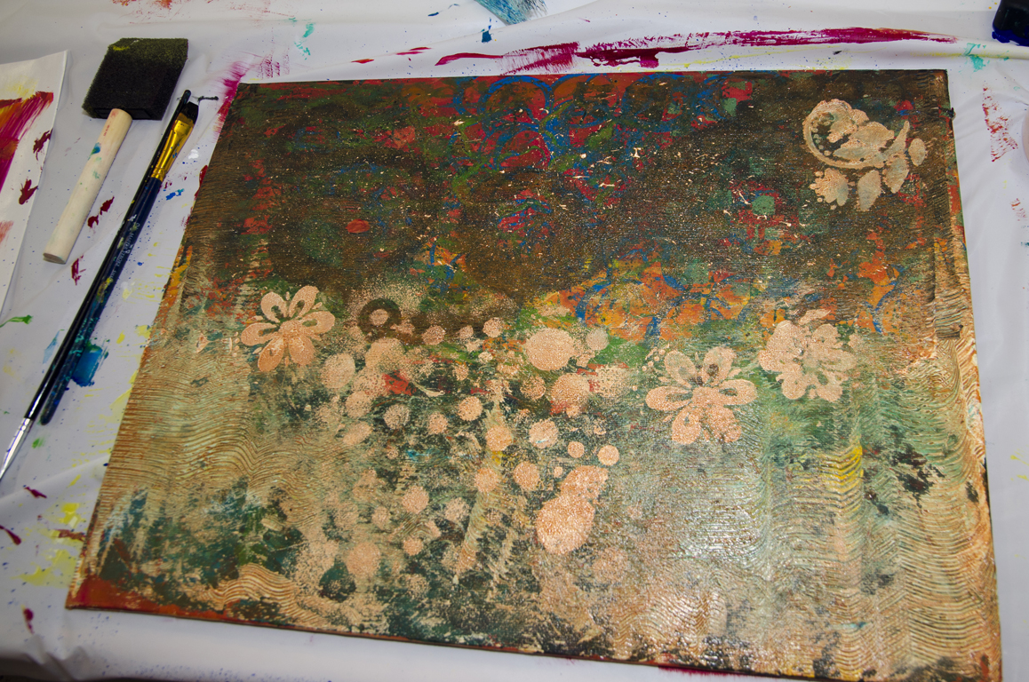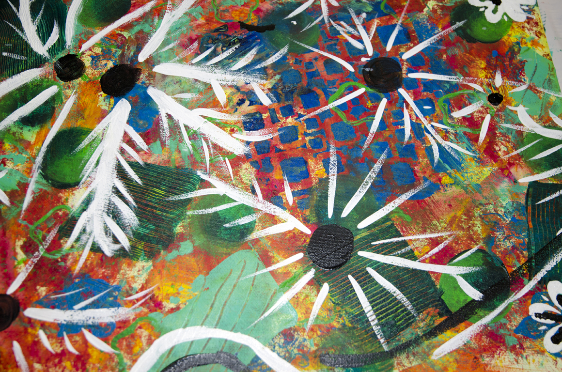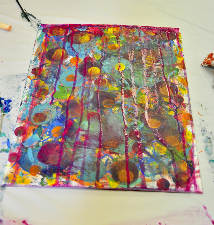 Spend time looking at your canvas. Explore and develop what is already taking shape there. You might even want to use this as a background for a collage – use all you have ever learned and go from there.